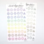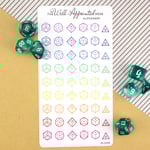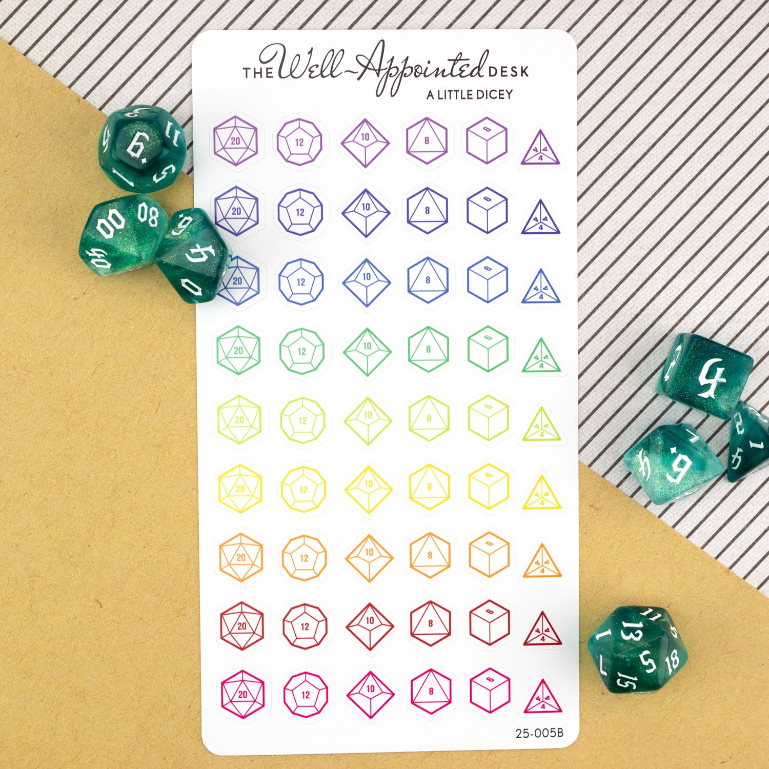 Our D20 Roll For Initiative was just the start of our gamification sticker sheets. Per requests, we now have a full set of D&D dice stickers, available in both our Neutral and Bright colorways.