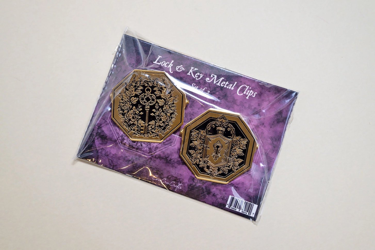 This new beautiful set of 2 clips make a great tool to keep your journal open, clip your important papers or just add a decorative touch to your desk. The clips feature delicate scrollwork and a vintage lock and key design. Perfect for keeping your secrets seecure.