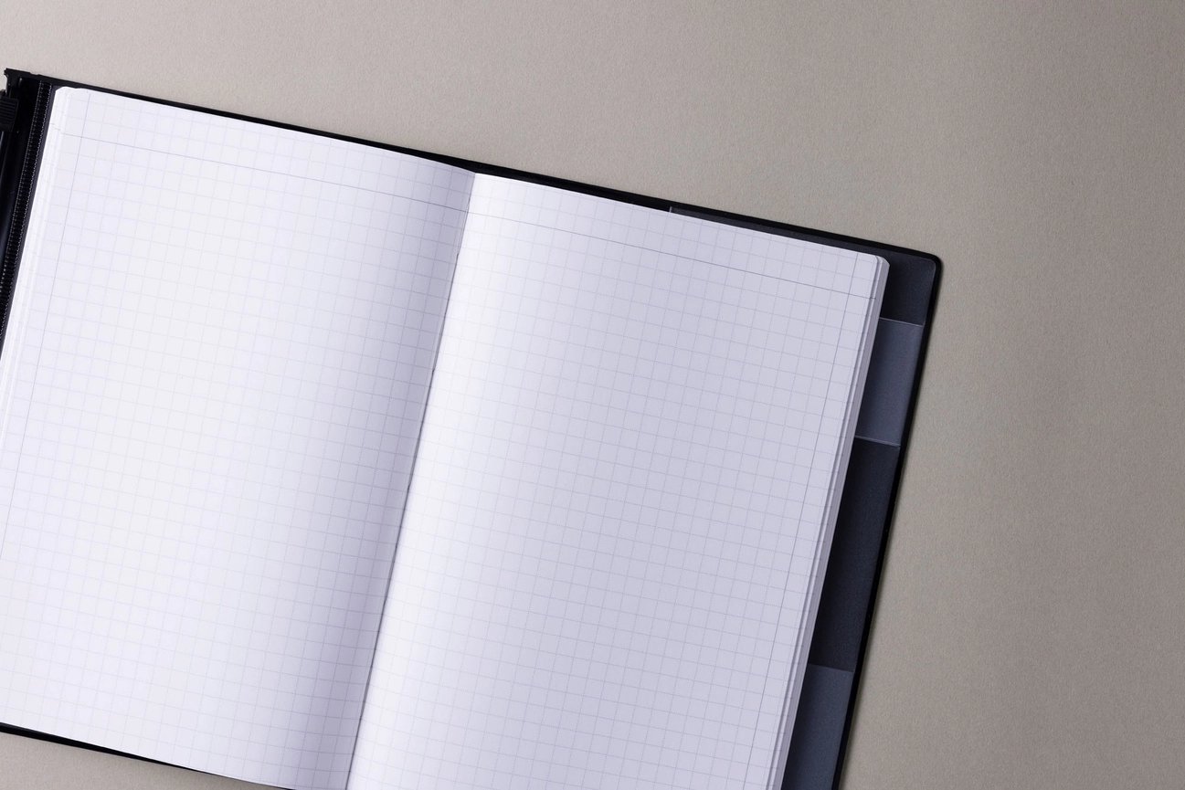 The format can be used vertically or horizontally, and the 5mm grid is a moderate gray color that is easy to write and draw on. It is a notebook, a memo pad, and sometimes a diary that you can use to easily jot down inspiration and to-do lists, making it a convenient book for both business and personal use.