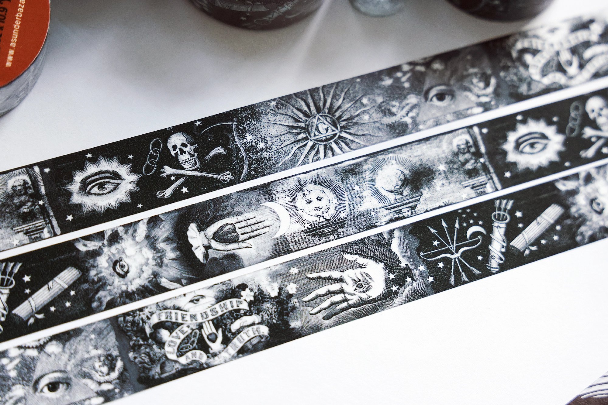 Beautiful, black and white illustrated Masonic washi tape created by Asunder Bazaar!