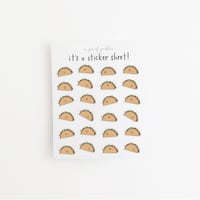 A full sheet of Mini taco clear stickers from A Jar of Pickles, printed on high-quality, waterproof and tear-proof material, meaning they can be stuck anywhere from planners to greeting cards to water bottles or laptops.