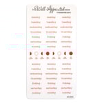 Six full weeks of translucent days of the week stickers for your journal, planner or notebook. Also included are 2 full moon cycle stickers.
